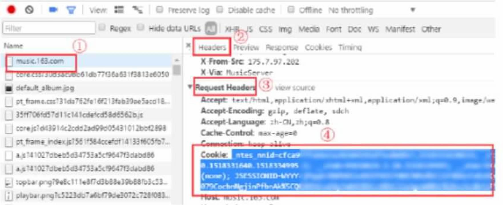 ### 浏览器开隐身模式,访问 http://music.163.com/ ### 按下 F12(或Ctrl+shift+i)打开浏览器控制台,切换到Network(网络)选项卡,点亮左侧这个小红点  ### 刷新浏览器,等待页面再一次加载完毕 ### 将下侧出现的列表拉到最顶上,在Name(名称)里找到music.163.com这一项,点进去 ### 在Headers(标头)选项卡中往下拉,找到 Request Headers(请求标头),选定并复制 Cookie:后面的文字内容  ### 大功告成。。。如果过几天又失效了,请尝试再次获取Cookie。。。 Loading... ### 浏览器开隐身模式,访问 http://music.163.com/ ### 按下 F12(或Ctrl+shift+i)打开浏览器控制台,切换到Network(网络)选项卡,点亮左侧这个小红点  ### 刷新浏览器,等待页面再一次加载完毕 ### 将下侧出现的列表拉到最顶上,在Name(名称)里找到music.163.com这一项,点进去 ### 在Headers(标头)选项卡中往下拉,找到 Request Headers(请求标头),选定并复制 Cookie:后面的文字内容  ### 大功告成。。。如果过几天又失效了,请尝试再次获取Cookie。。。 ◈ 最后修改:2023 年 05 月 12 日 © 来自互联网 打赏 赞赏作者 支付宝微信 赞 如果觉得我的文章对你有用,请随意赞赏